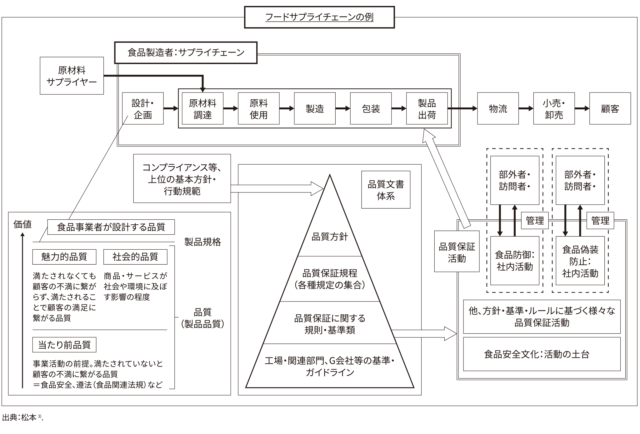 図 フードサプライチェーンにおける製品品質を実現するための食品製造者の取り組み例