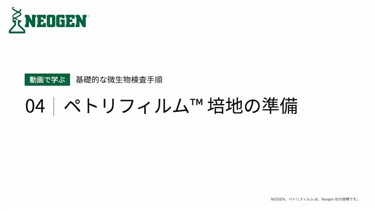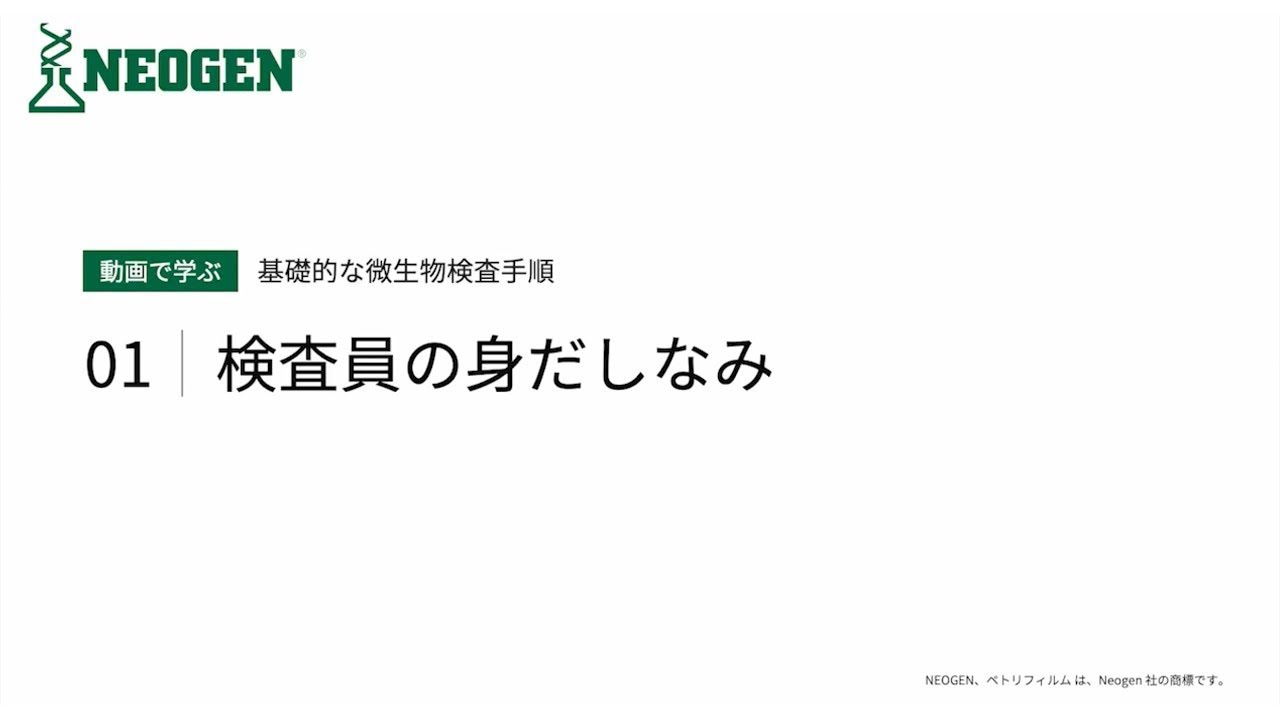 微生物検査の身だしなみから片付けまで、全工程の基礎的なポイントを動画でお伝えします。毎日の品質管理にぜひお役立てください。