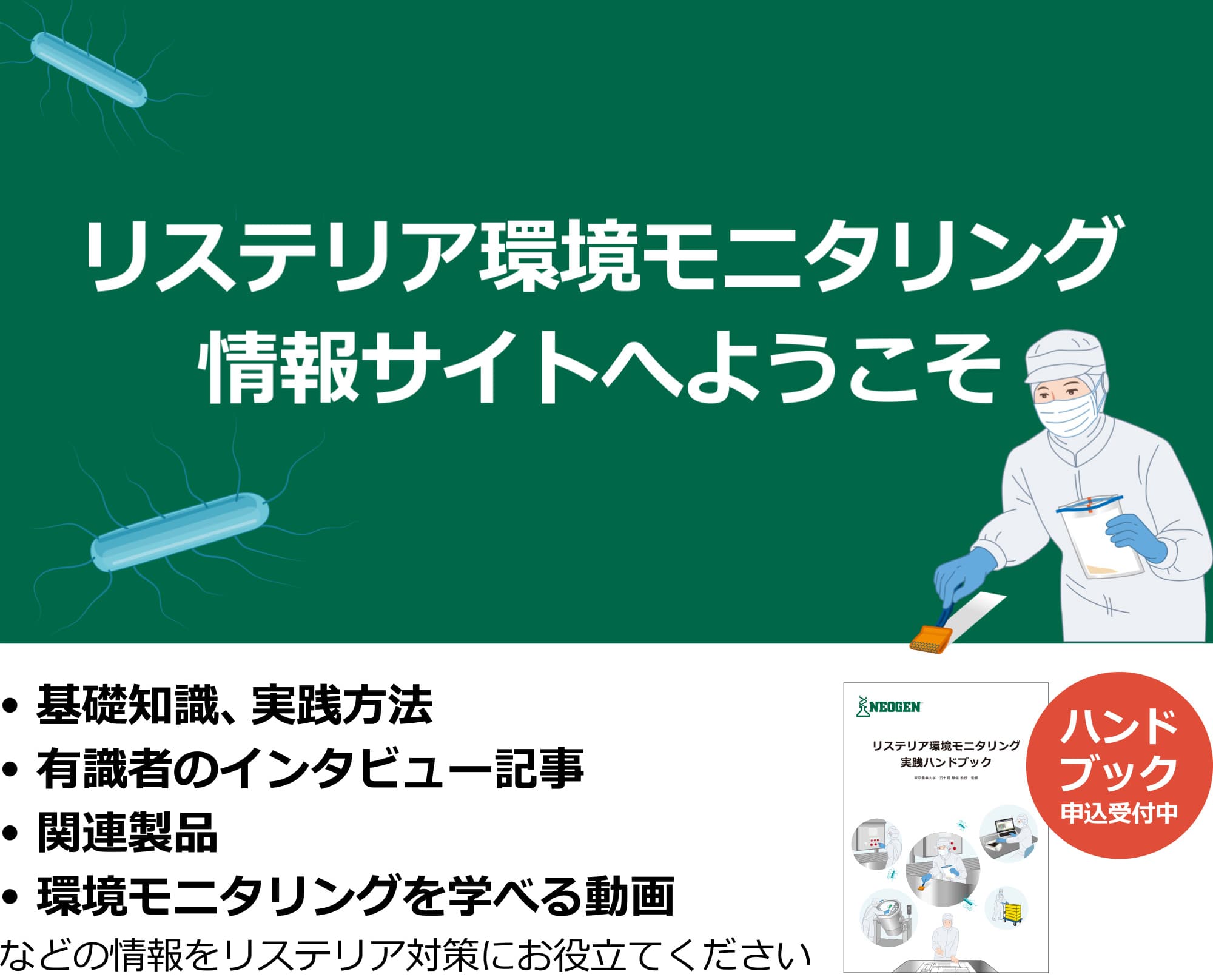 - 1 冊でリステリア対策の全体像を広くカバー